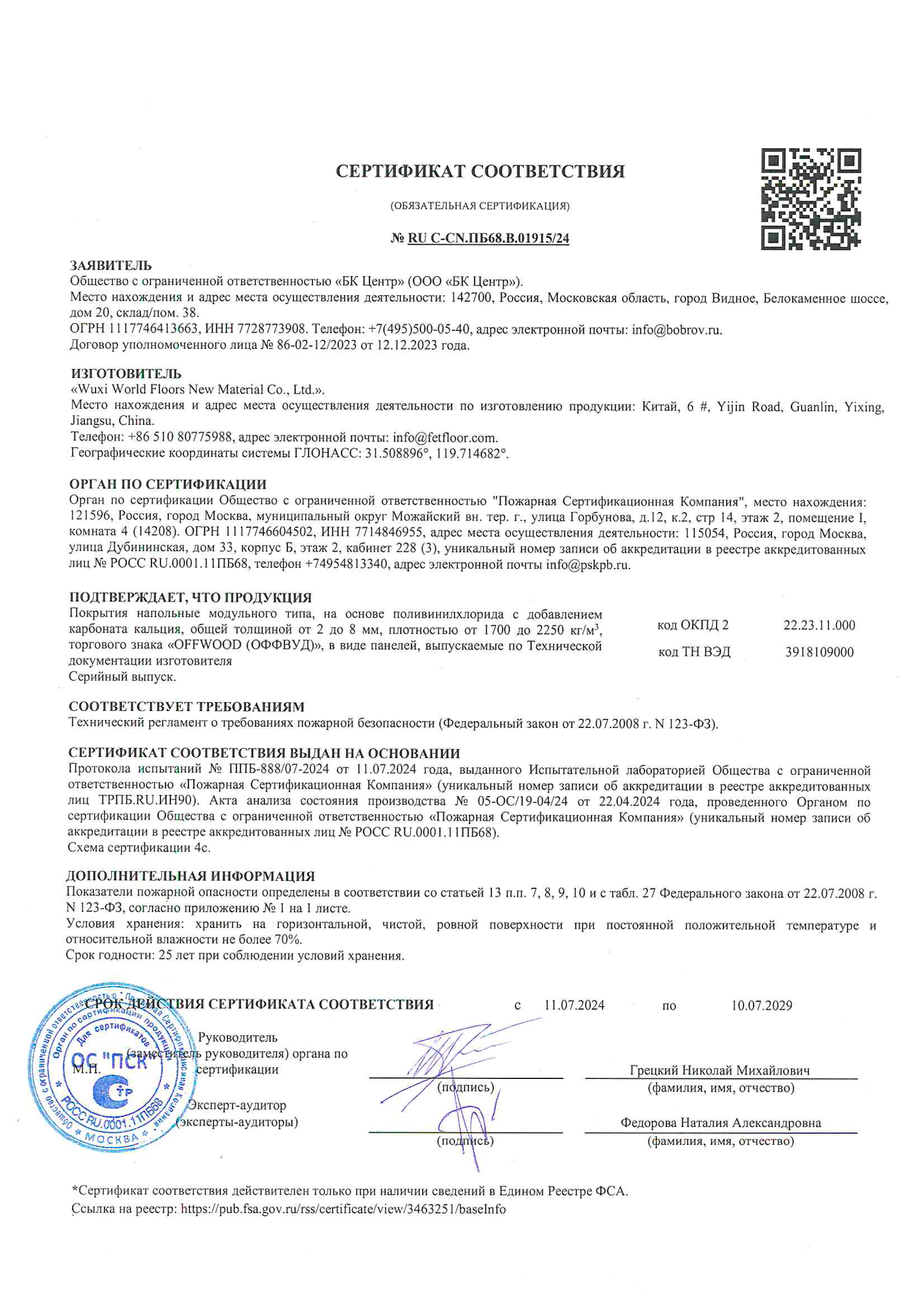 | Класс пожарной опасности | КМ2 |